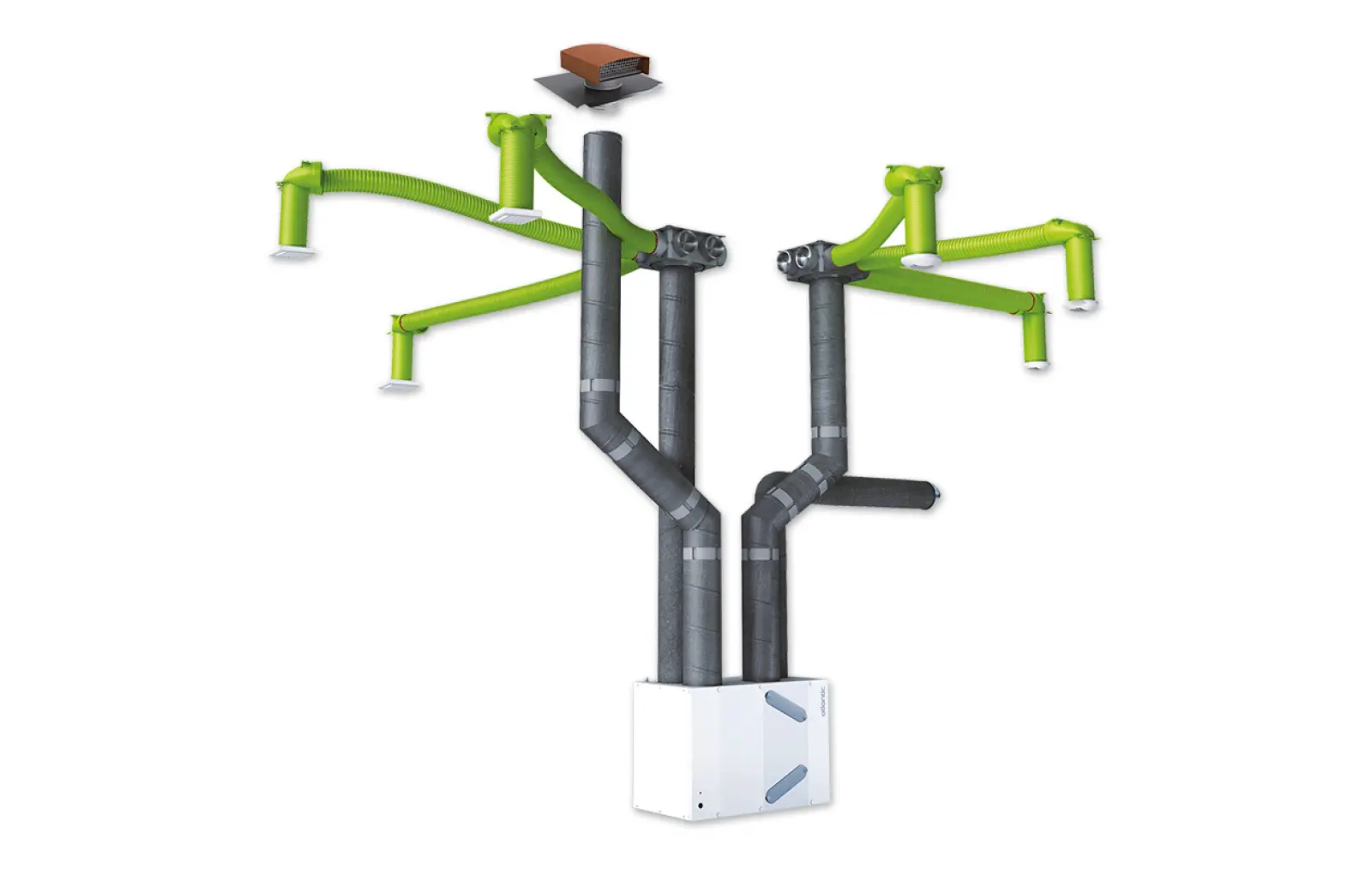 L’air extrait est rejeté à l’extérieur, tandis que l’air entrant est filtré avant insufflation, contribuant à améliorer la qualité de l’air intérieur.